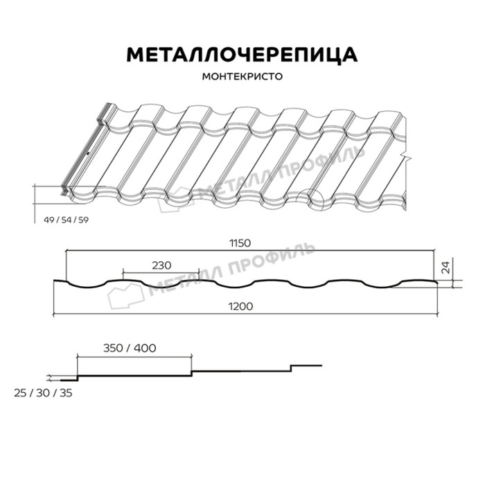Стальная черепица МОНТЕКРИСТО подходит для эксплуатации в разных типах строительства или климатических условиях. Этот профиль эстетично выглядит на скатах большой и малой площади, акцентируя красоту всех видов крыши. Длина и высота ступеней металлочерепицы ― 350, 400 мм и 25, 30, 35 мм. Рассматриваемый профиль отличается выразительными плавными линиями в сочетании с умеренным рельефом, что подчёркивает сходство кровельного материала с керамикой. Покупайте эстетичную стальную черепицу МОНТЕКРИСТО в нашей компании!